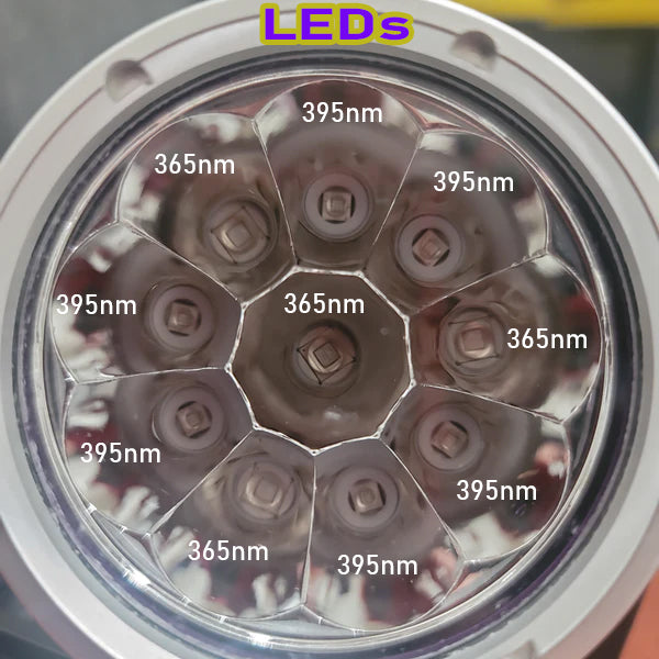 Dual LED Technology: Combines 10 HIGH POWER LEDs (6x 395nm and 4x 365nm) to make pet urine stains glow neon green, ensuring they are highly visible even in bright daylight.